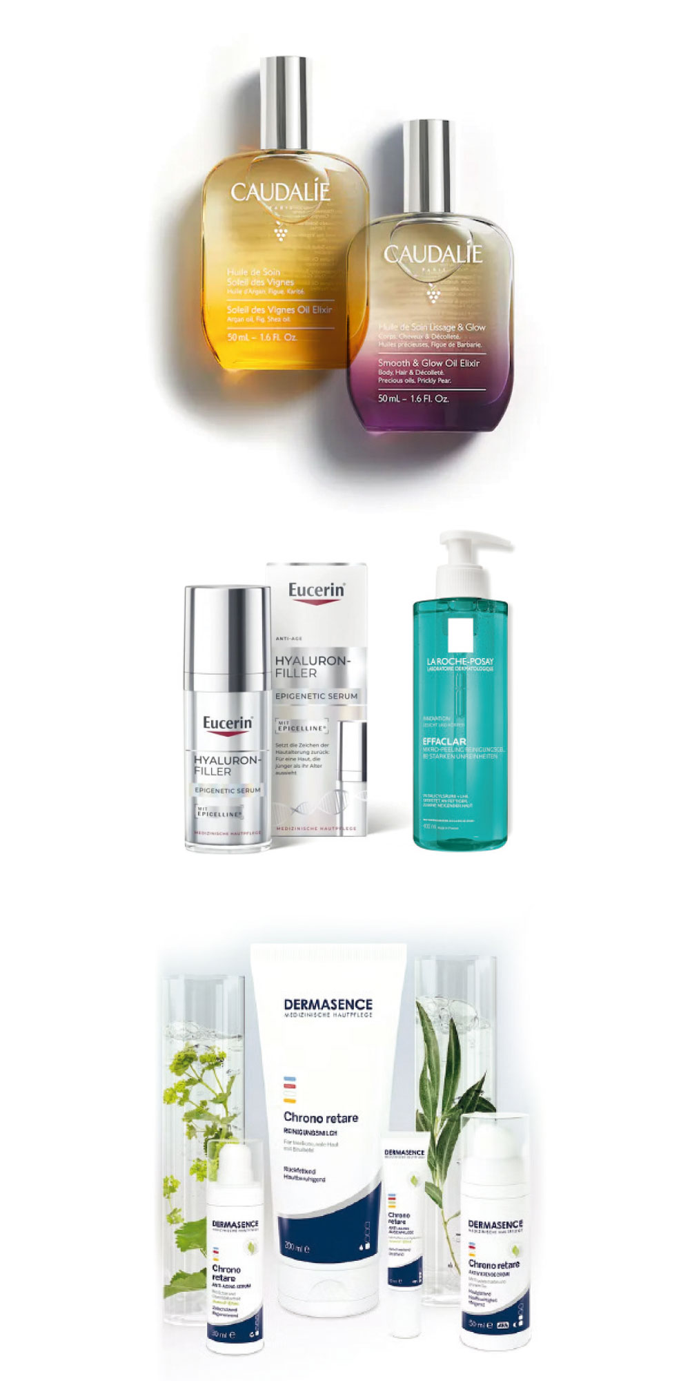 Wenn es draußen kalt ist, schenken wir Ihrer Haut Pflege und Ihren Liebsten ein Lächeln: Die hochwertigen Pflegelinien von Caudalíe, Eucerin, La Roche-Posay und Dermasence bieten alles von zarter Reinigung über entspannende Pflege oder ein Serum für strahlende Haut auch im Winter – gerne liebevoll für Sie kombiniert, auf Hauttyp und Vorlieben abgestimmt. So wird aus guter Pflege ein Geschenk mit Gefühl.